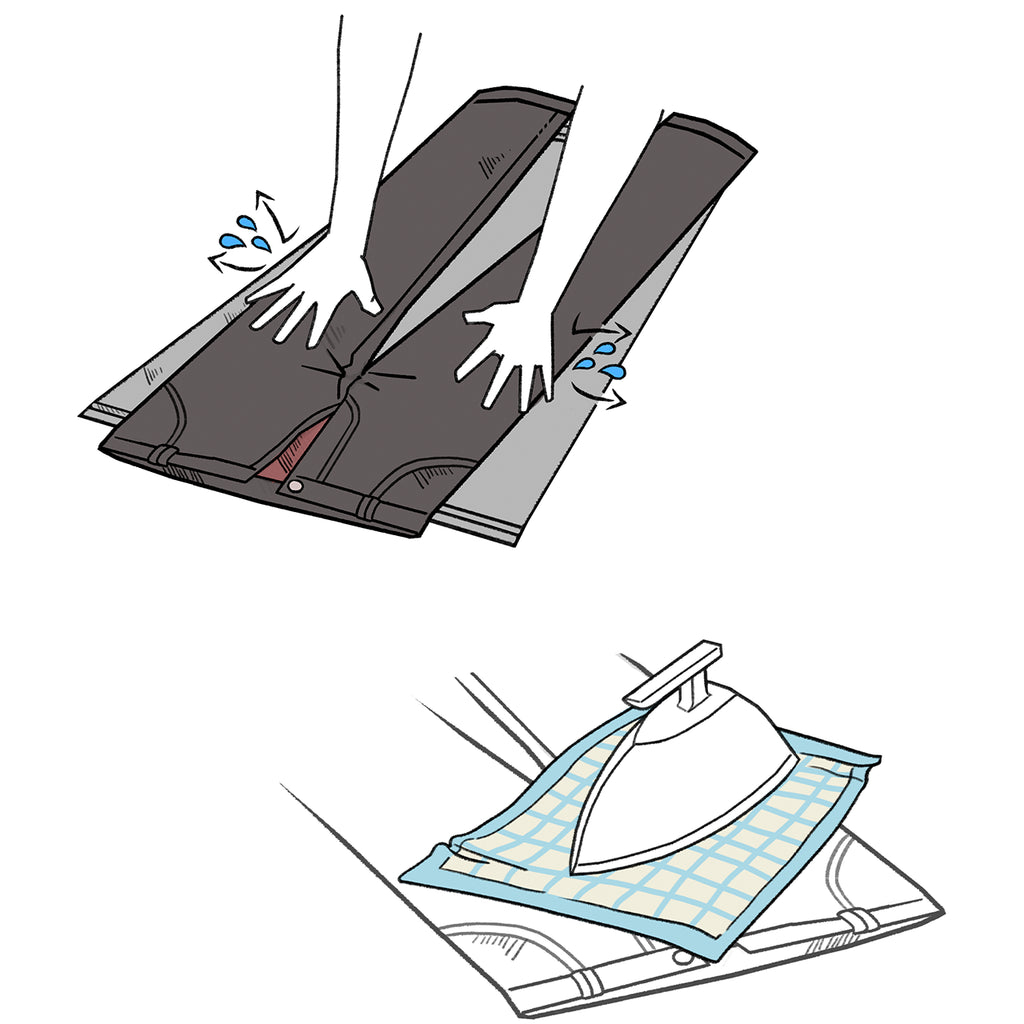 Bei dunklen Hosen und Jeans empfehlen wir das Bügeln auf links, um Glanzstellen zu vermeiden.