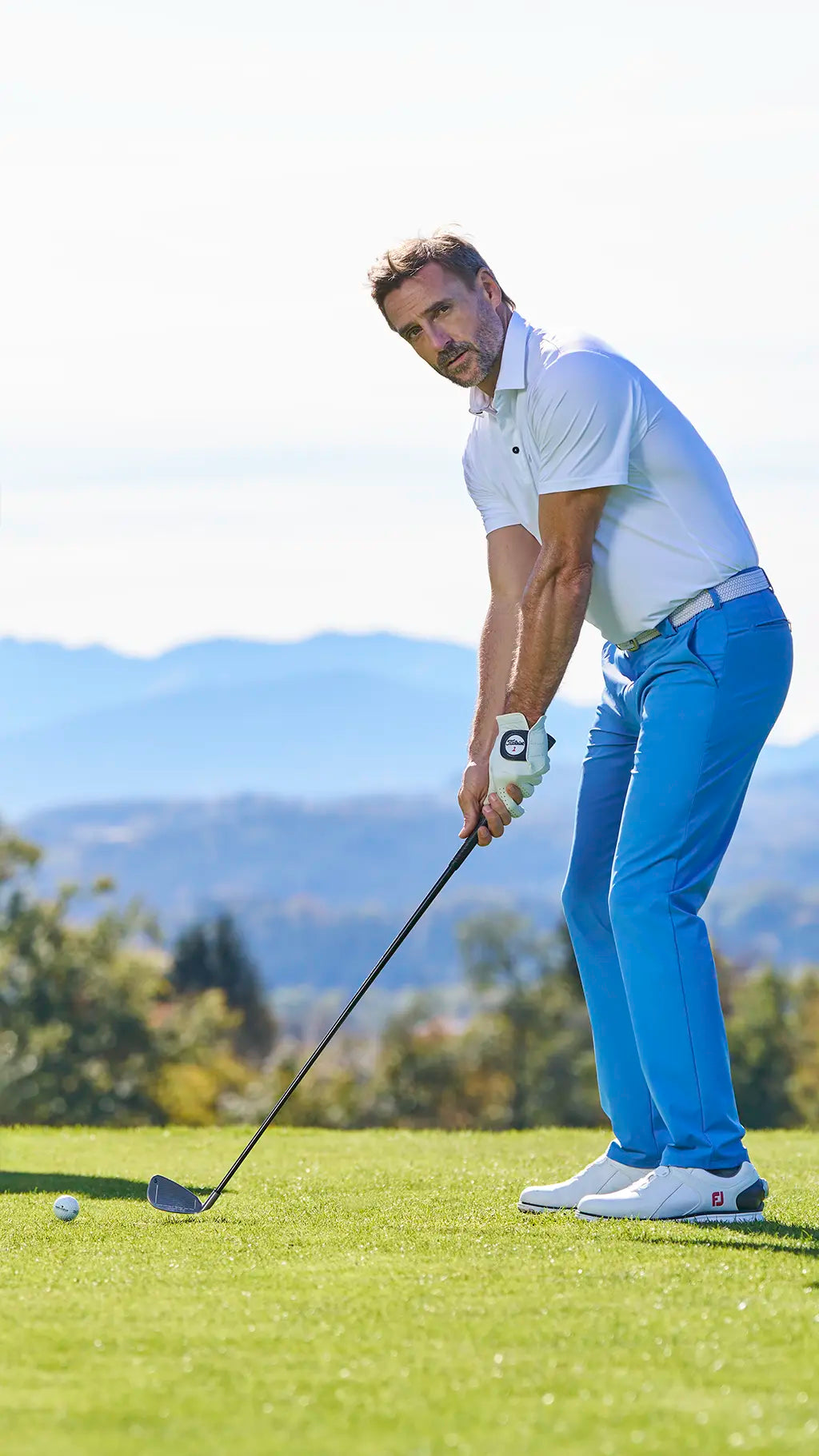 Unsere ausgezeichneten Golfhosen präsentieren sich in modern designten Passformen und eleganten Farben. Semisartorial gefertigte Details spiegeln den exklusiven Charakter dieser Chinos wider: Die silikonbeschichtete Innenseite in den Gesäßtaschen hält Ihren Handschuh an Ort und Stelle und der Hemdenstopper im Bund verhindert, dass Ihr Oberteil verrutscht. Eine hochwertige Innenaustattung mit buntgewebtem Taschenbeutel zeugt von der Sorgfalt, mit der unsere Golfhosen gefertigt werden.